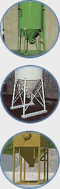 Sämtliche Behälter-Typen sind mit genormten Anschlüssen zur Befüllung und zum Materialaustrag ausgestattet. Das Andocken von Fördergeräten, Durchlaufmischern, Austragsschnecken ist dadurch gewährleistet. Die Verarbeitungsqualität, Geometrie, Statik, Auslaufverhalten sind überzeugend und sie entsprechen dem Stand der Technik.